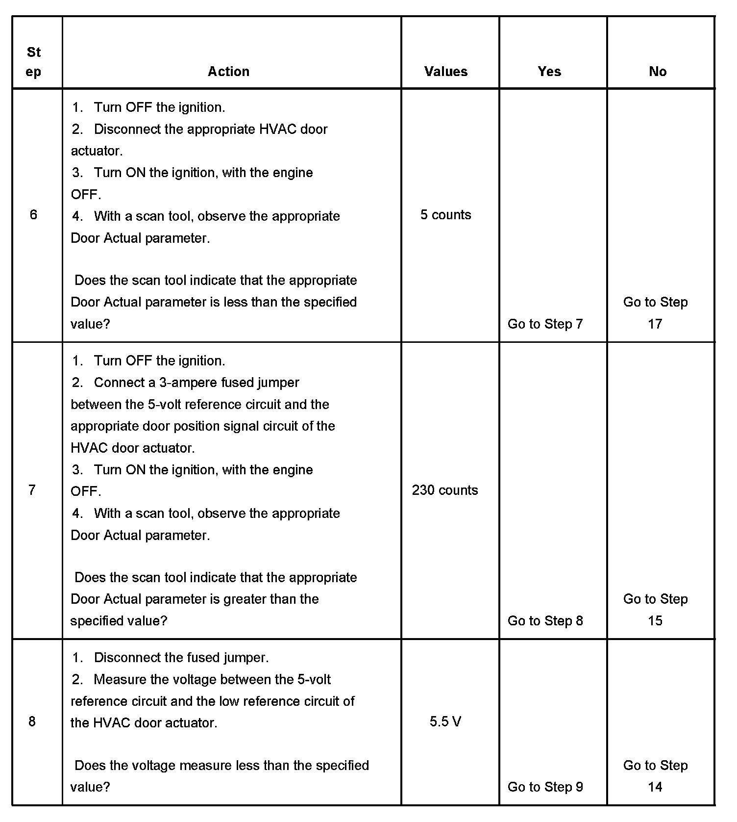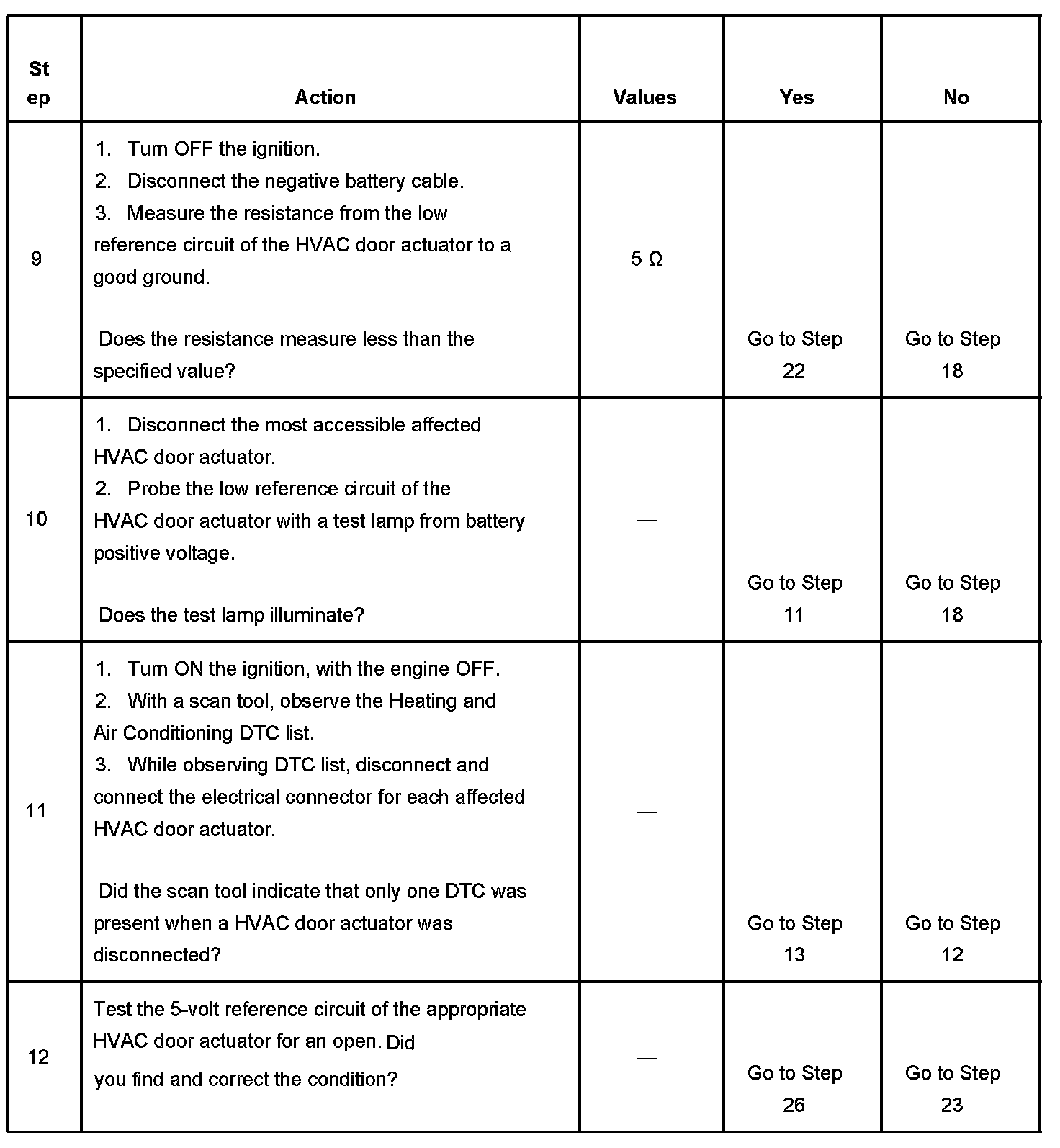 10. This step tests for an open on the low reference circuit that is common to all of the actuators. Choose the easiest HVAC door actuator that set a DTC to start the diagnosis.