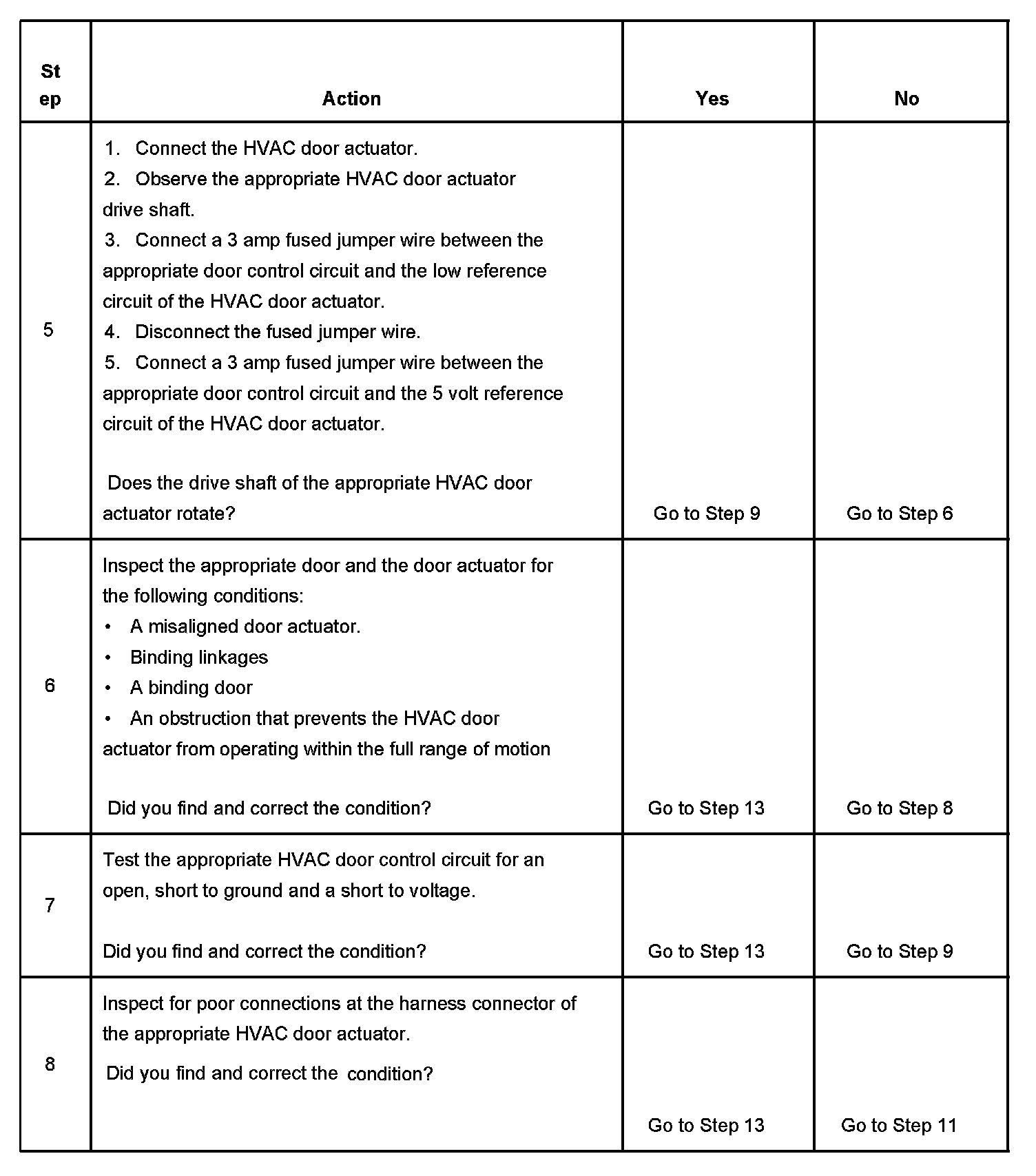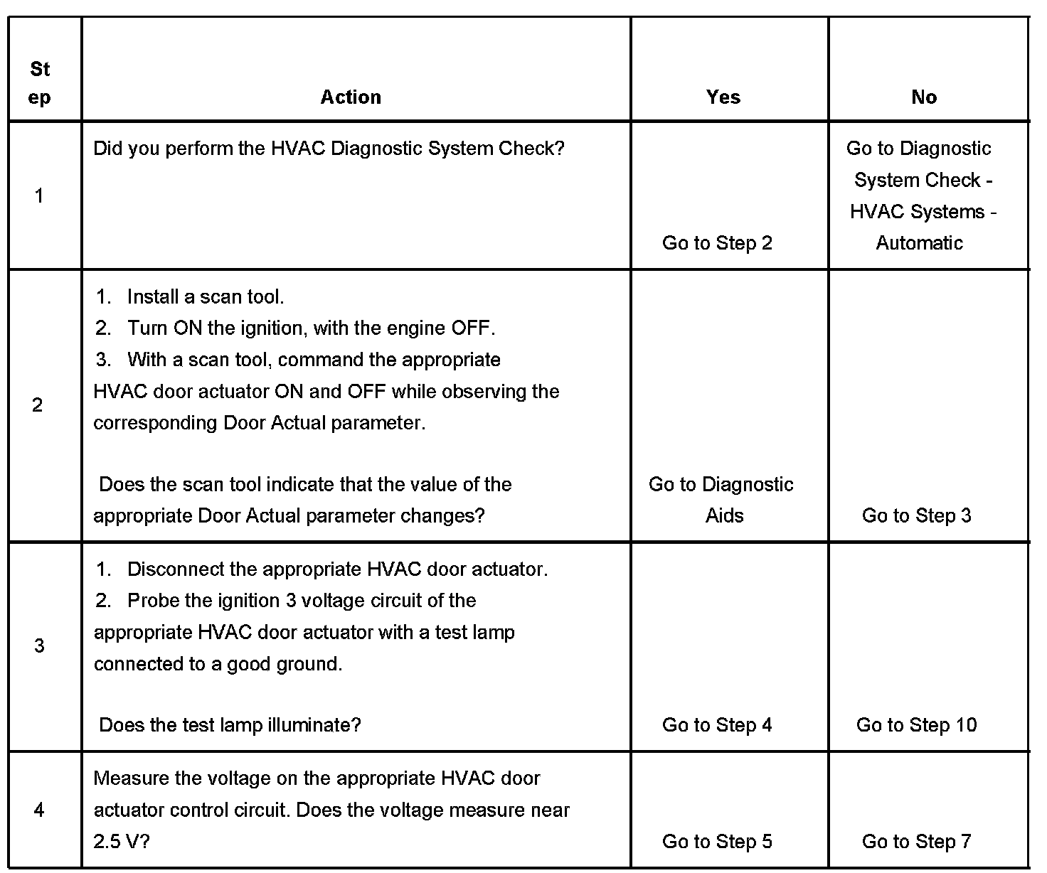 2. This step determines if the HVAC door actuator is stalled.
