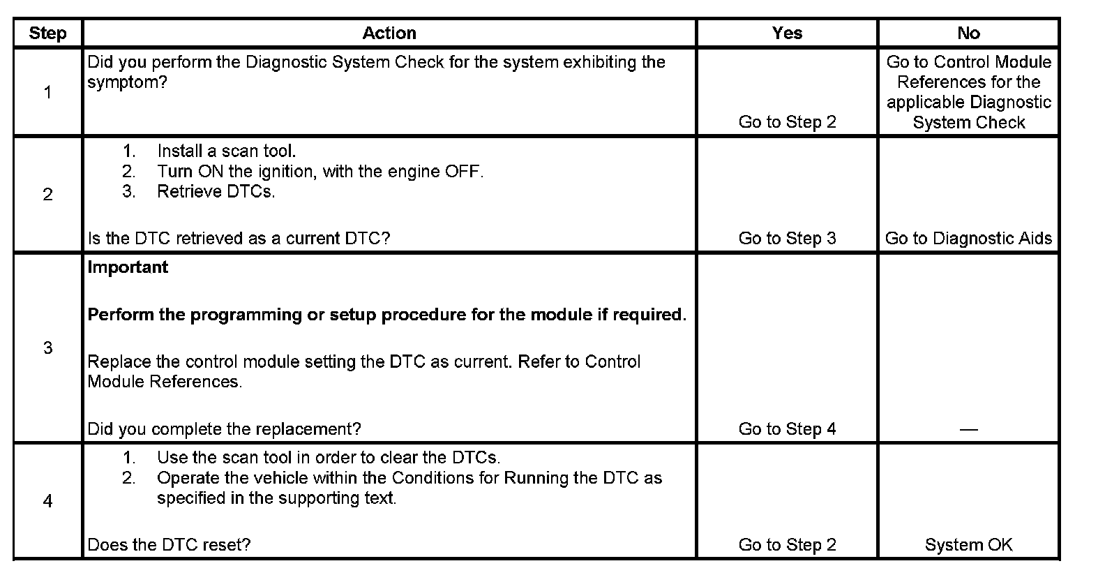 - If this DTC is retrieved as both a current and history DTC, replace the module.