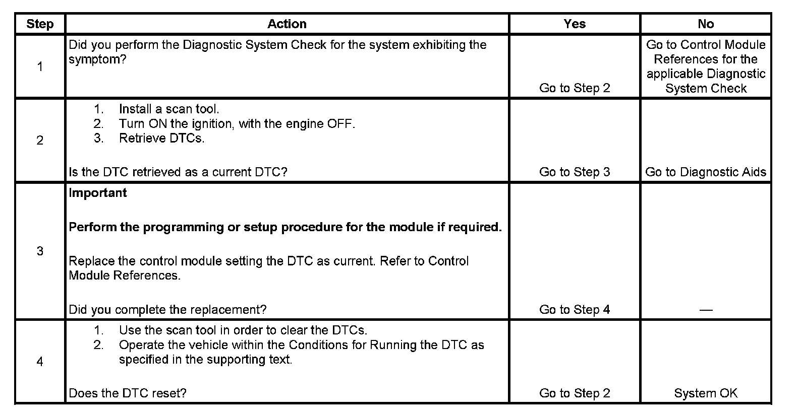 - If this DTC is retrieved as both a current and history DTC, replace the module.