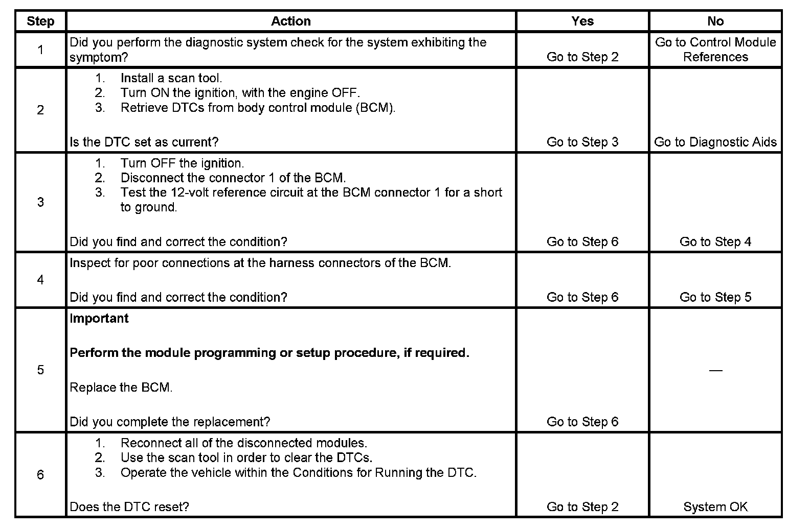 The BCM senses a short to ground in the 12-volt reference circuit, for more than 1 second.