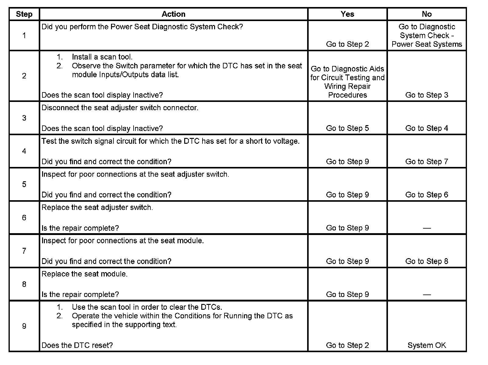 The seat module will disable the seat adjuster function for which the DTC has set.