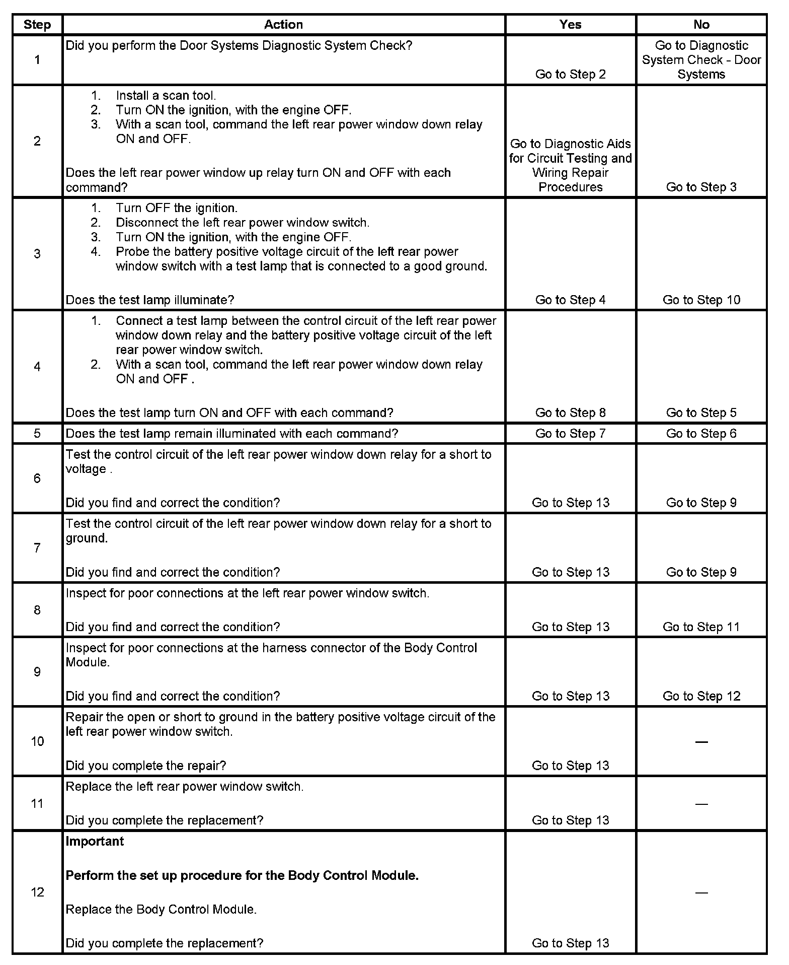- When the BCM has grounded the left rear power window down relay control circuit and the control circuit is shorted to battery positive voltage.