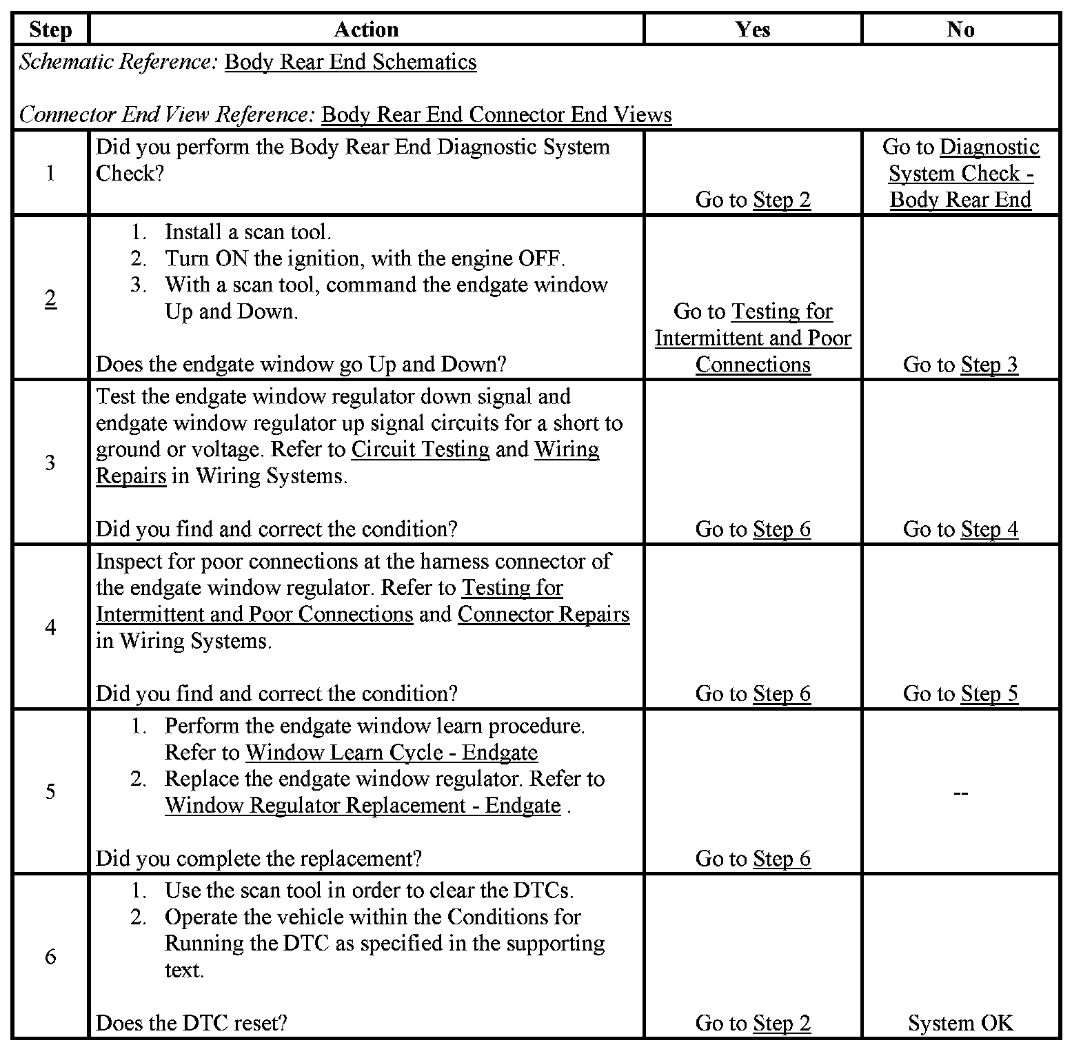 -> The endgate module no longer detects a current DTC B3964 or B3965 in endgate module memory.