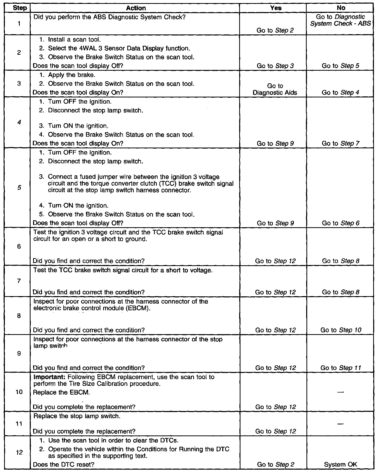 4. This step tests for a shorted stop lamp switch.