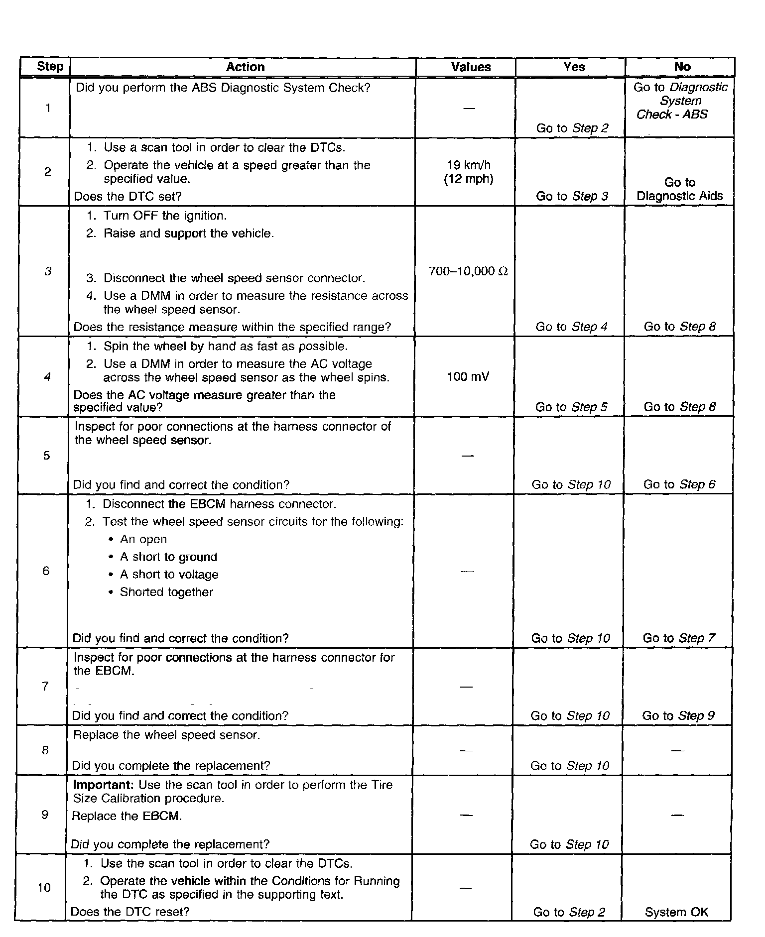 4. Ensures that the wheel speed sensor is generating a valid AC voltage output.