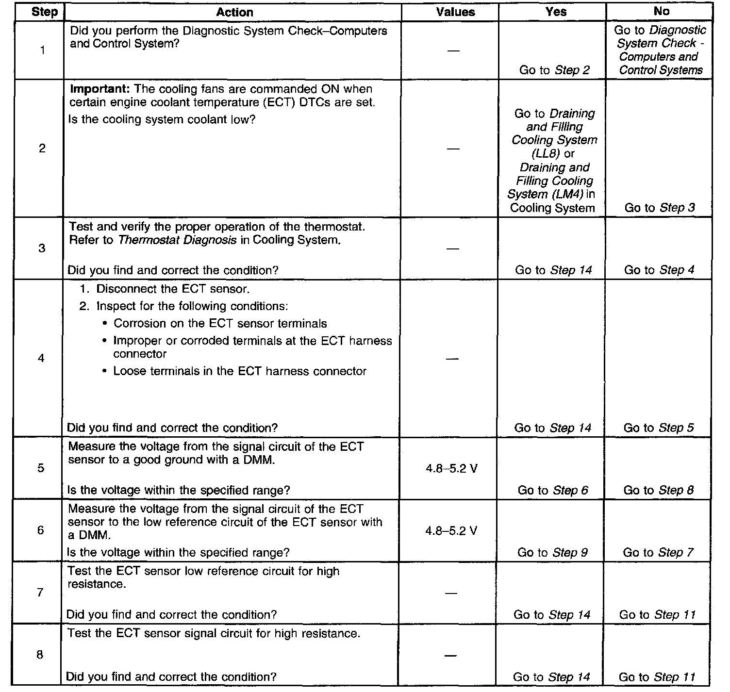 - The start-up ECT is less than 35°C (95°F).