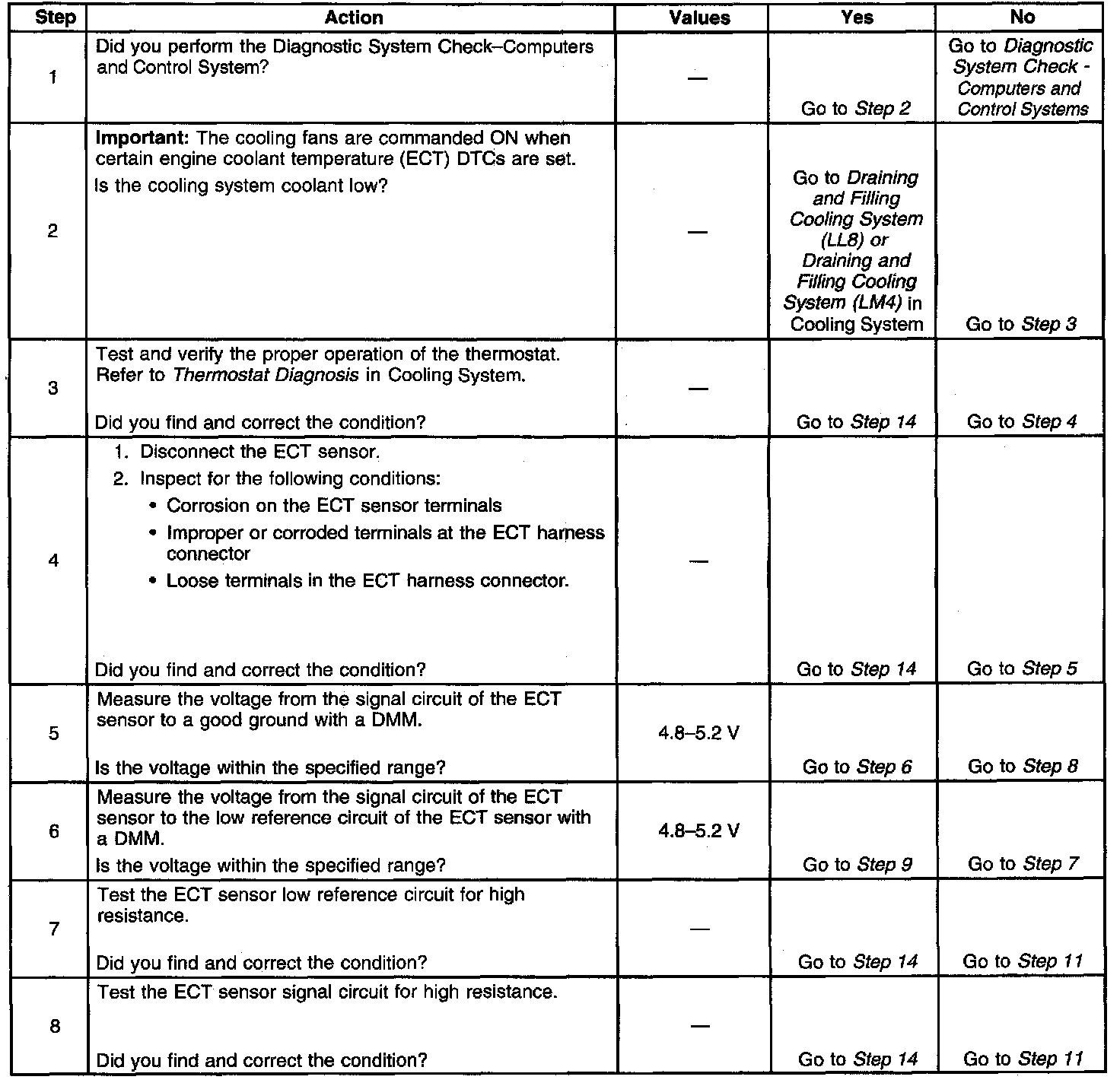 - The ECT is less than 75°C (167°F), but less than 70°C (158°F).