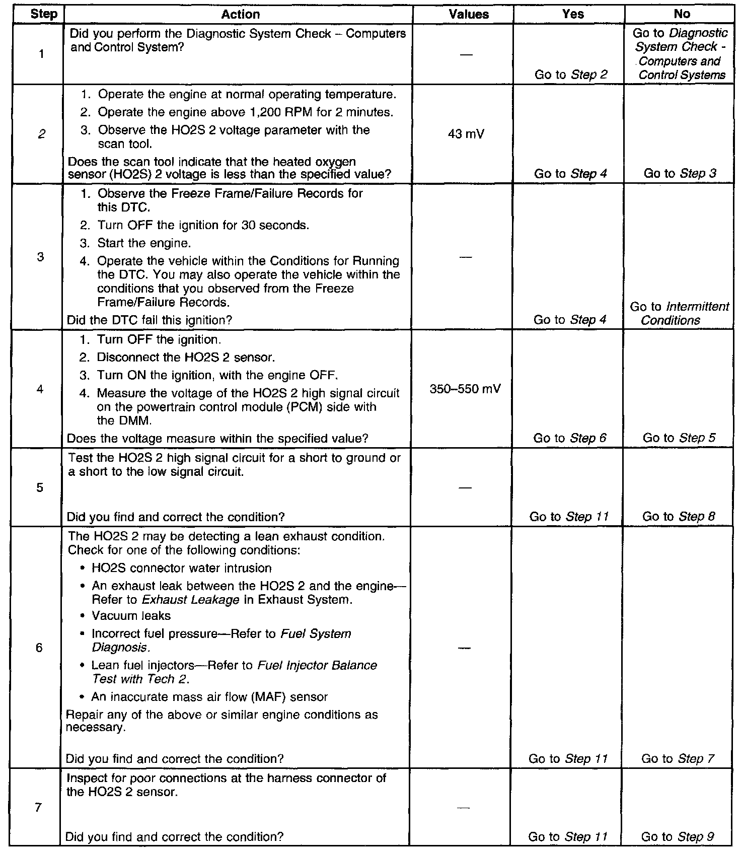 The PCM detects that the HO2S 2 parameter is less than 43 mV for 150 seconds.