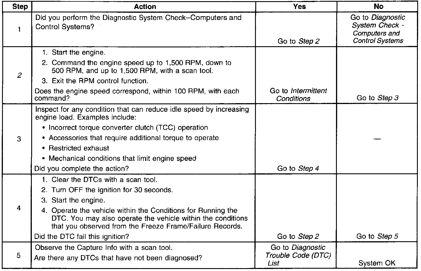 2. This test determines whether the engine can achieve the commanded RPM. If the engine does not reach the commanded RPMs, the test determines whether the RPM is too high or too low.