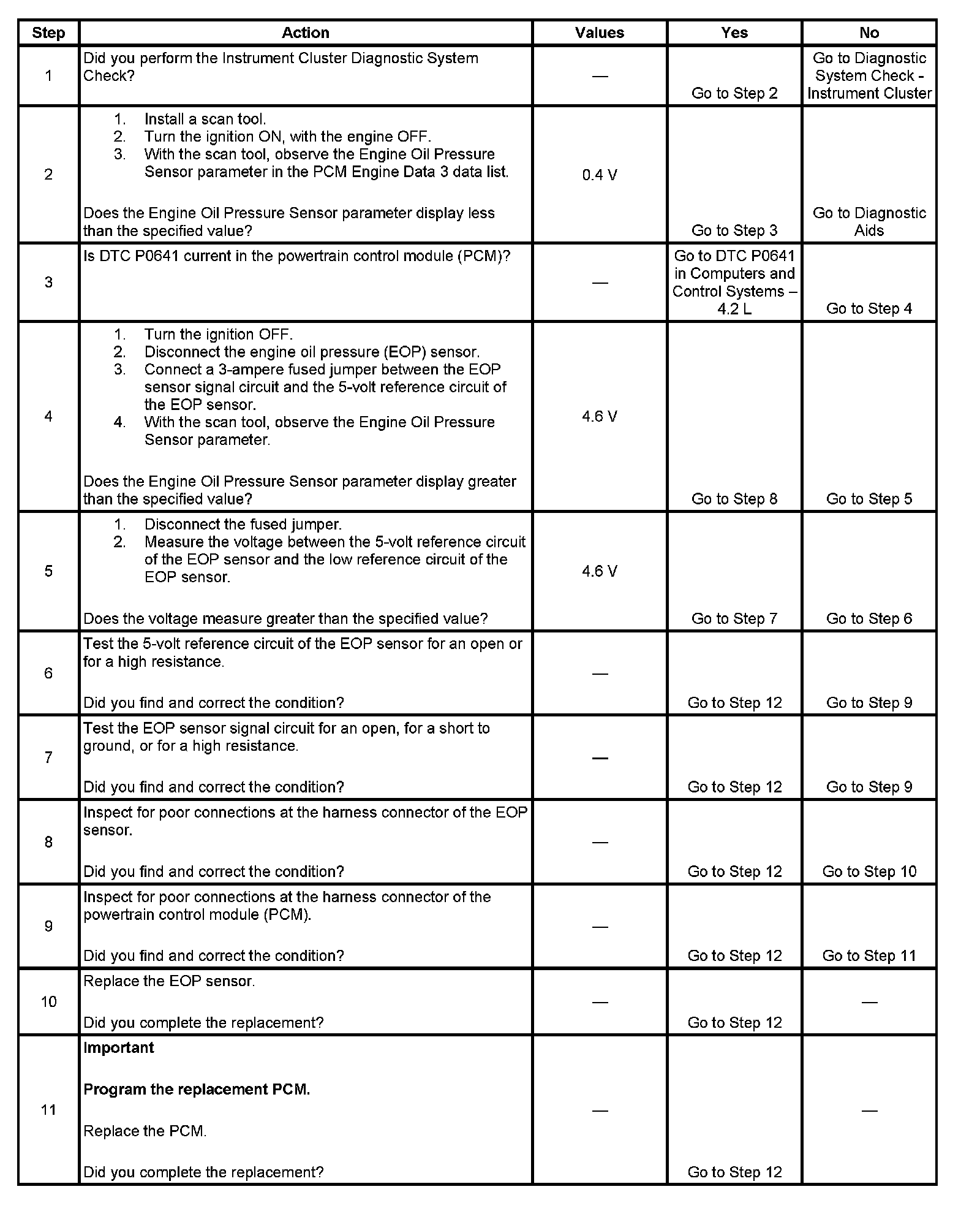 - The PCM detects that the EOP sensor signal circuit is less than 0.4 volts.