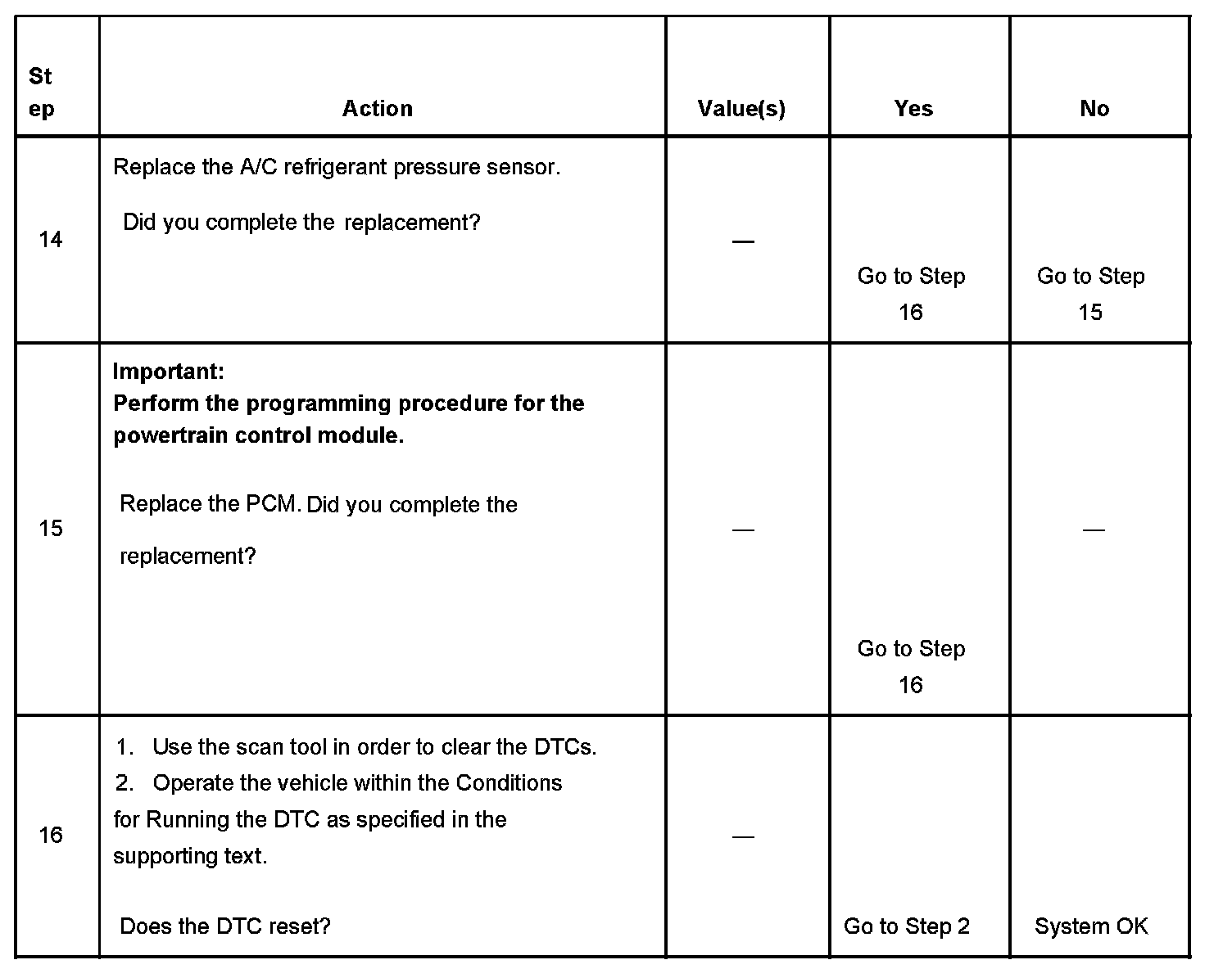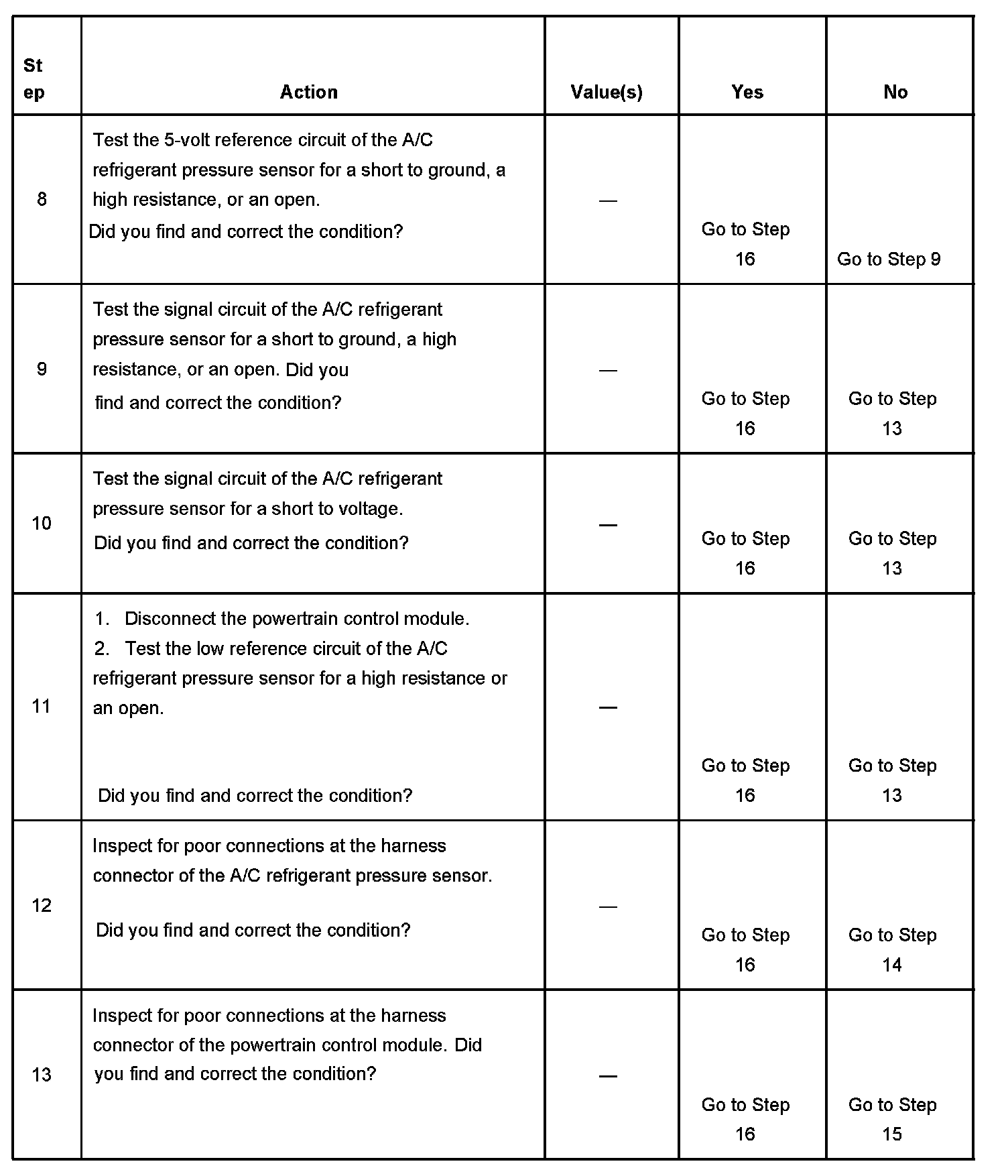 The numbers below refer to the step numbers on the diagnostic table.
