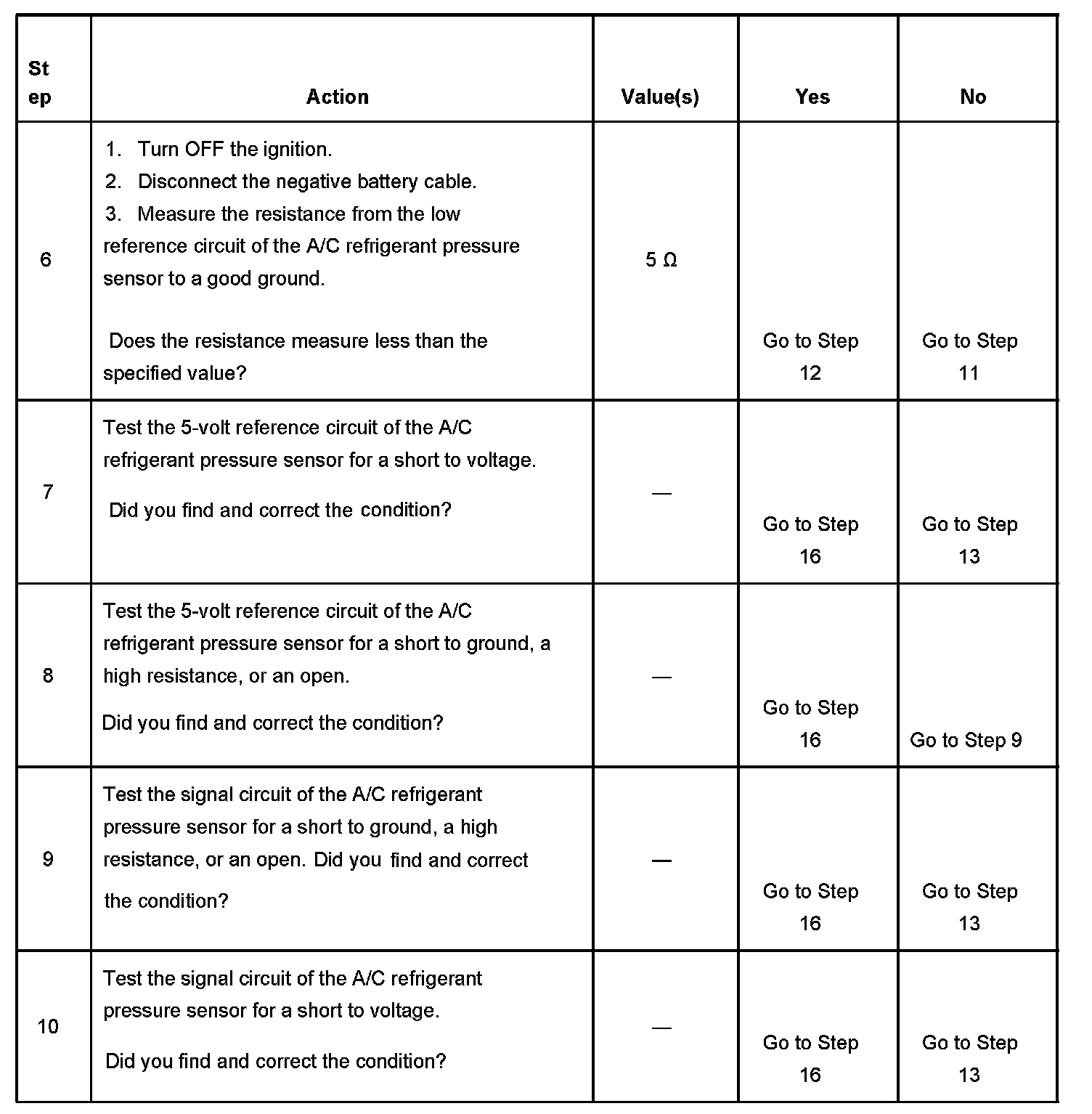 - The A/C refrigerant pressure sensor signal is less than 0.1 volts for 5 seconds.