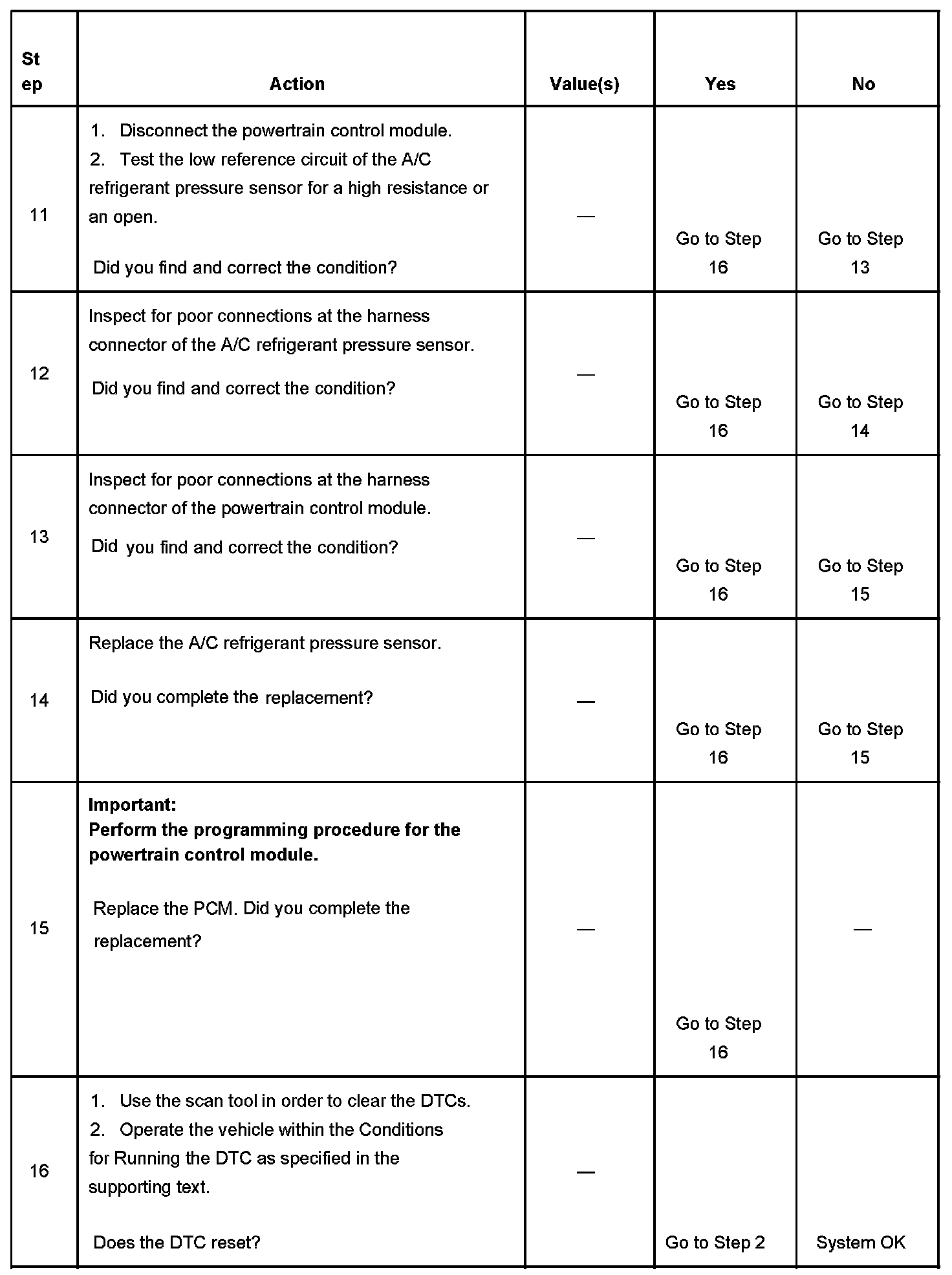 The numbers below refer to the step numbers on the diagnostic table.