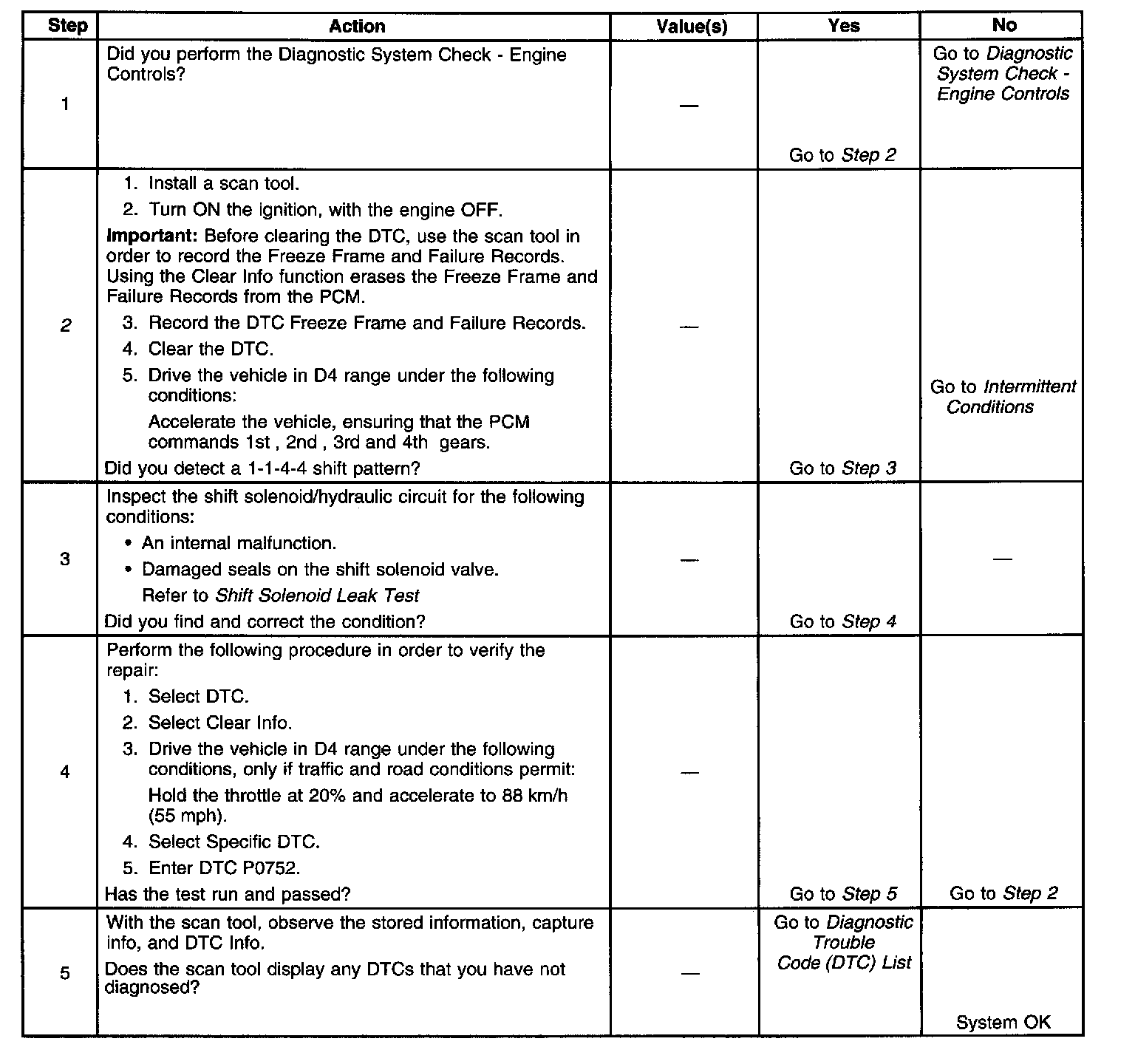^ The PCM stores DTC P0752 in PCM history.