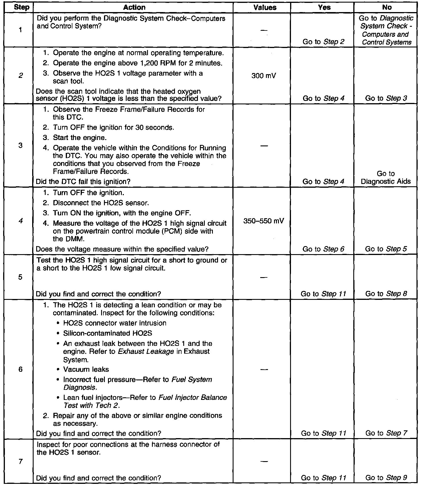 If the PCM detects an HO2S voltage that stays below a specified value, DTC P1171 will set.
