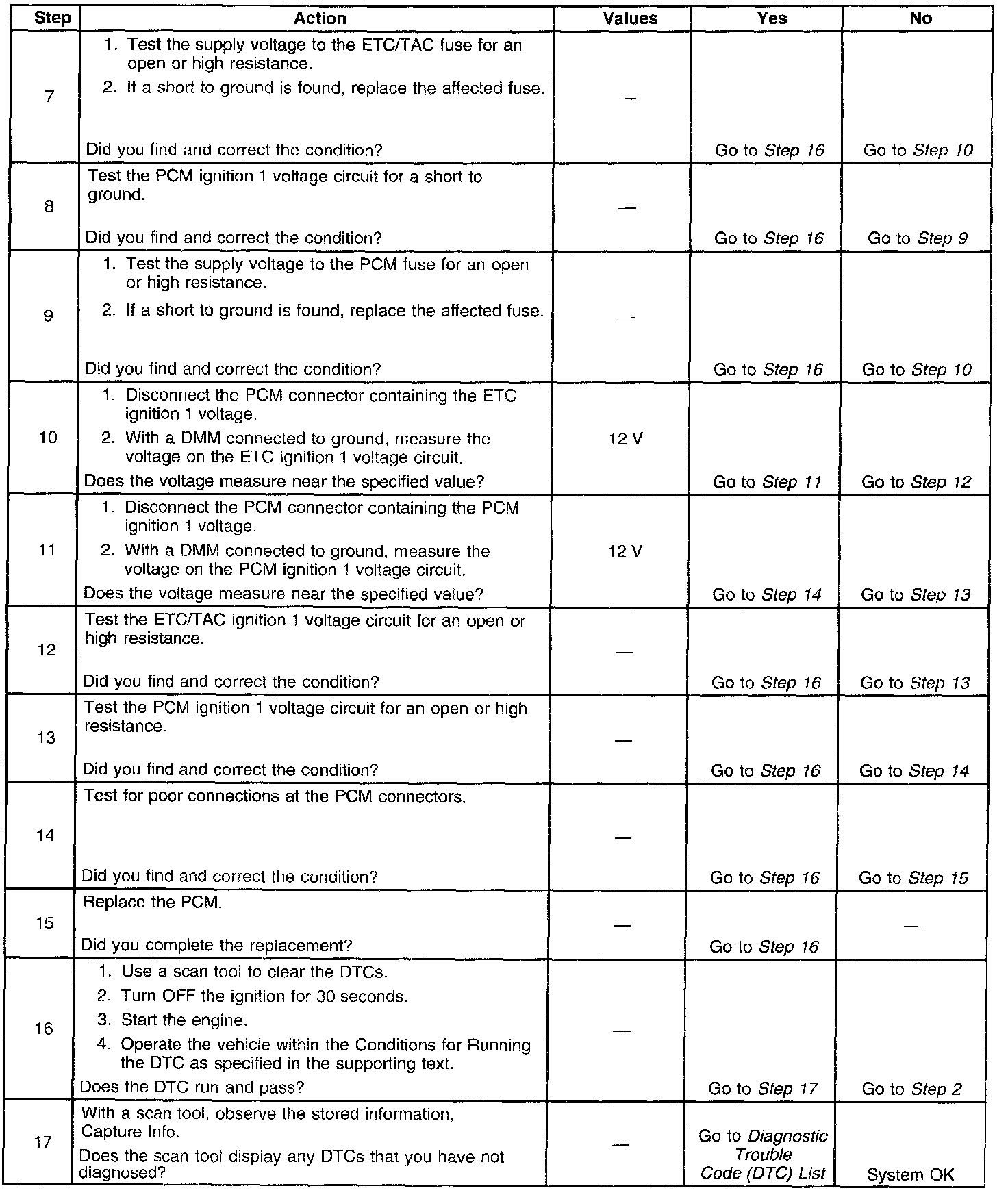 The throttle actuator control (TAC) system uses an ignition voltage supply separate from the powertrain control module (PCM) supply. If the PCM detects a voltage difference between the two circuits, this diagnostic trouble code (DTC) will set.