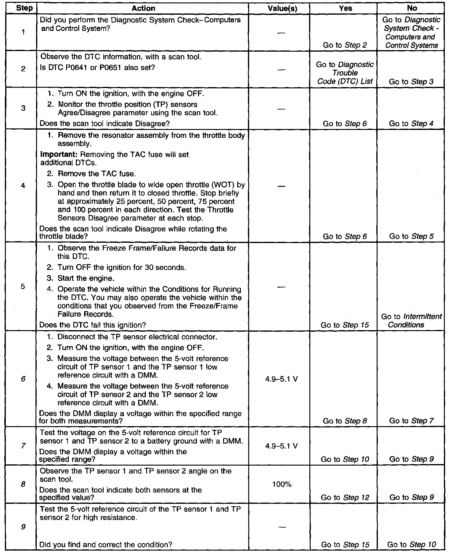 6. This step checks the integrity of the 5-volt reference and ground circuits of the TP sensors.