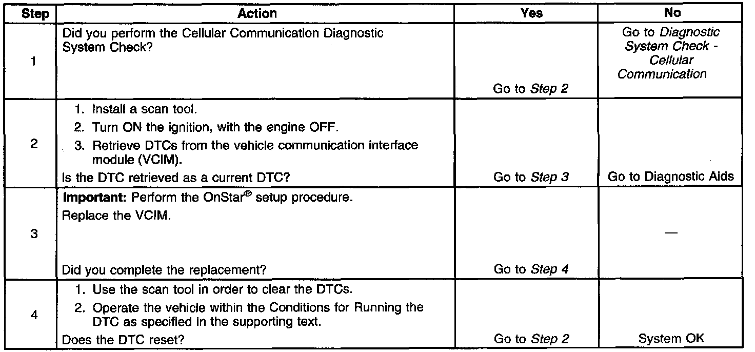 - If this DTC is retrieved as both a current and history DTC, replace the VCIM.