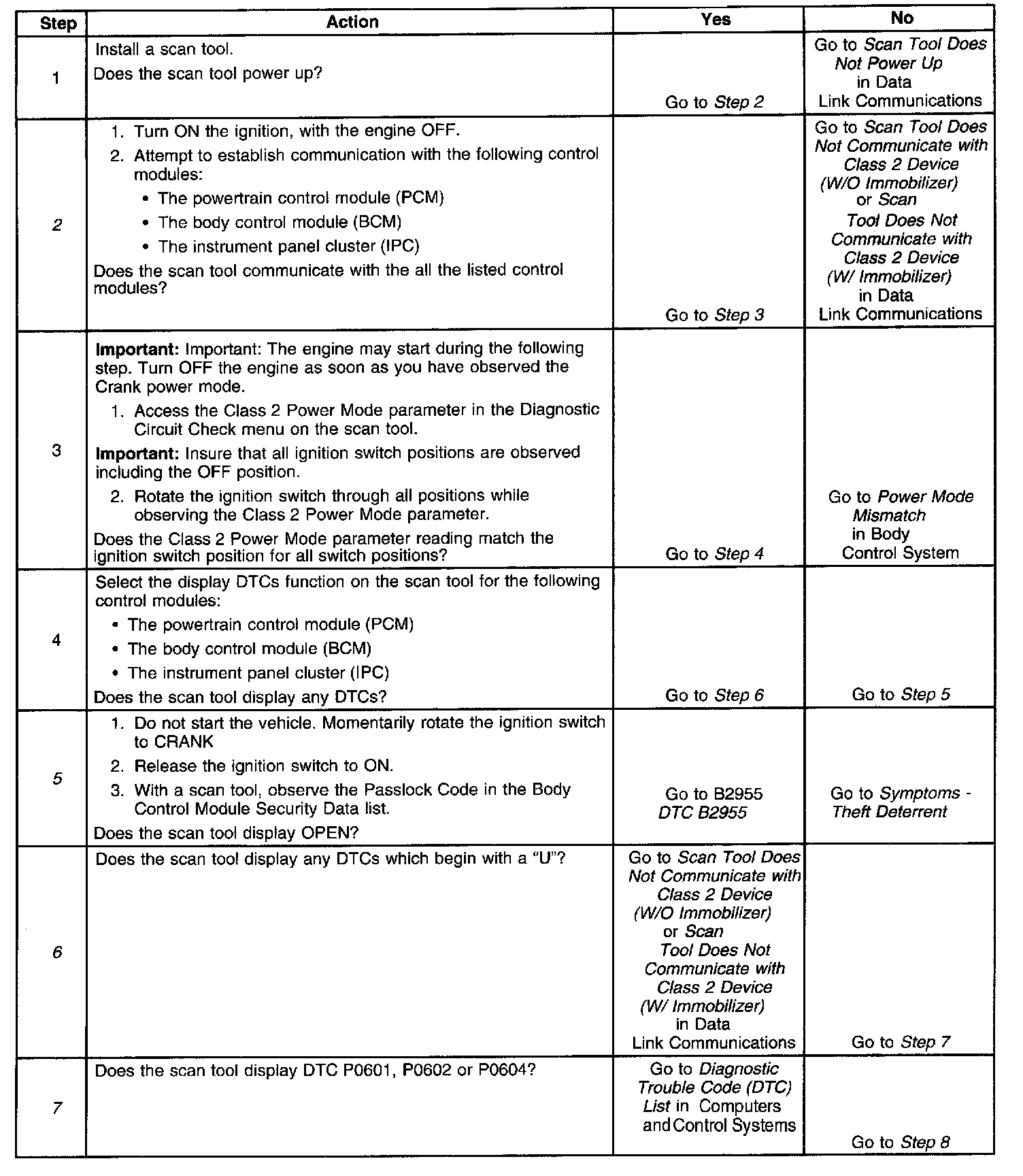 2. Lack of communication may be due to a partial malfunction of the class 2 serial data circuit or due to a total malfunction of the class 2 serial data circuit. The specified procedure will determine the particular condition.