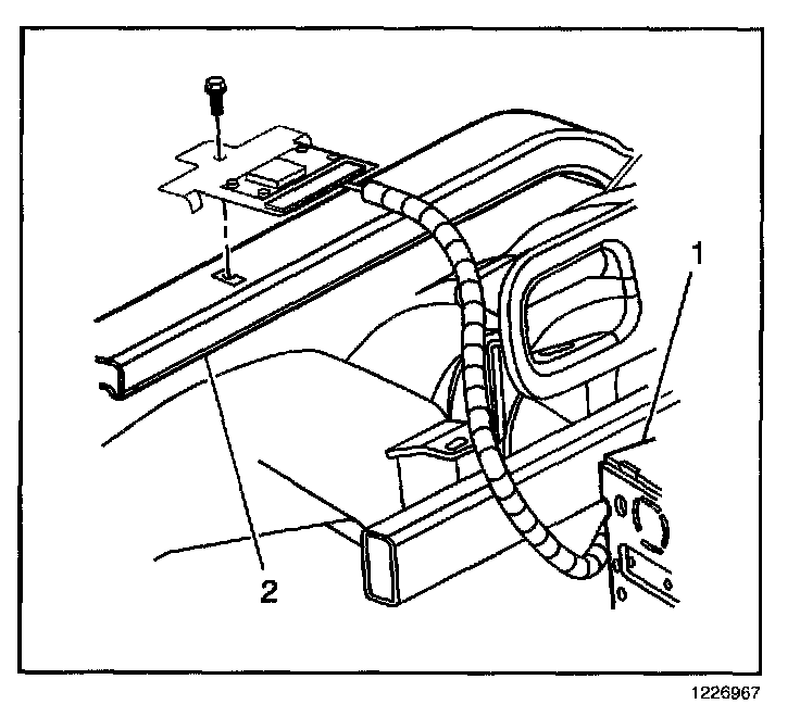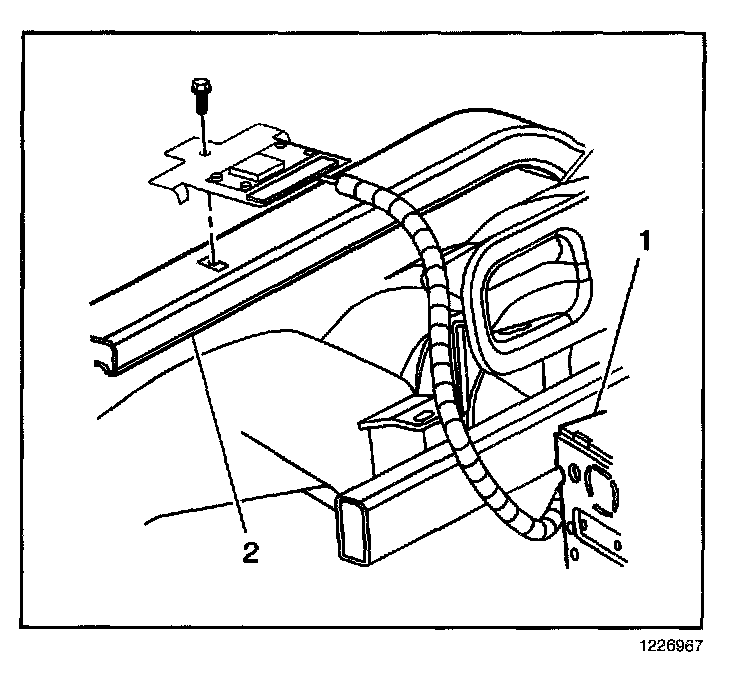 2. Install the screw retaining the antenna module to the cross-car beam (2).