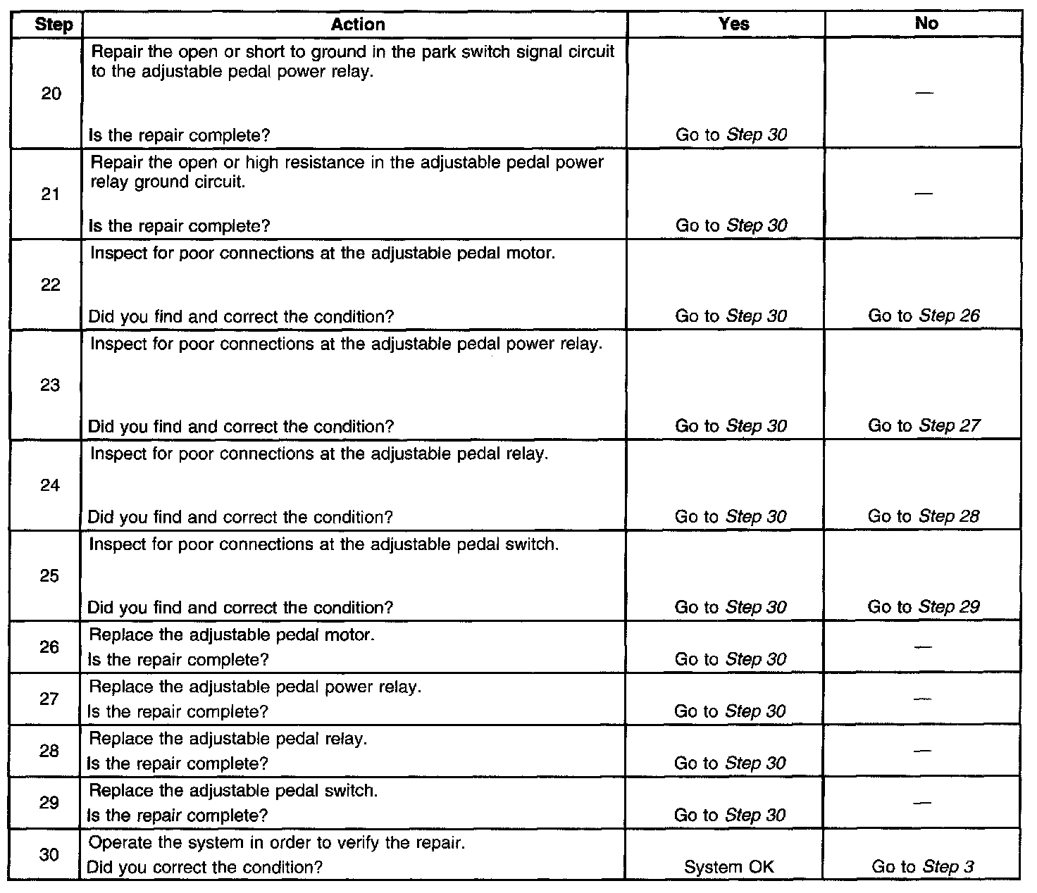 Adjustable Pedals Inoperative