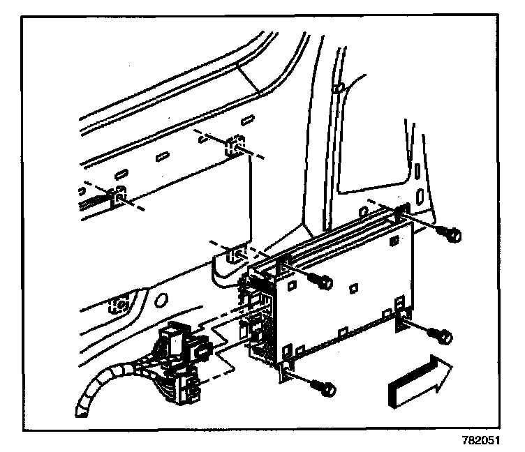 3. Remove the 4 bolts that retain the radio speaker amplifier to the body.
