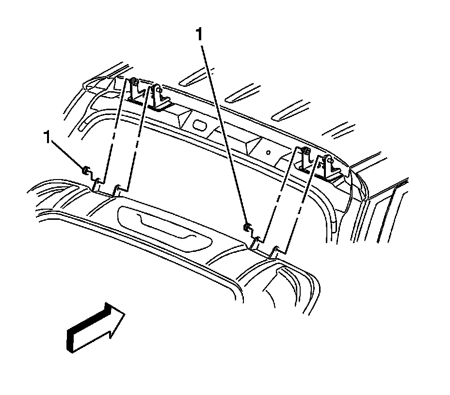 4. Remove the liftgate hinge pivot retainers (1) from the liftgate hinge pivots.