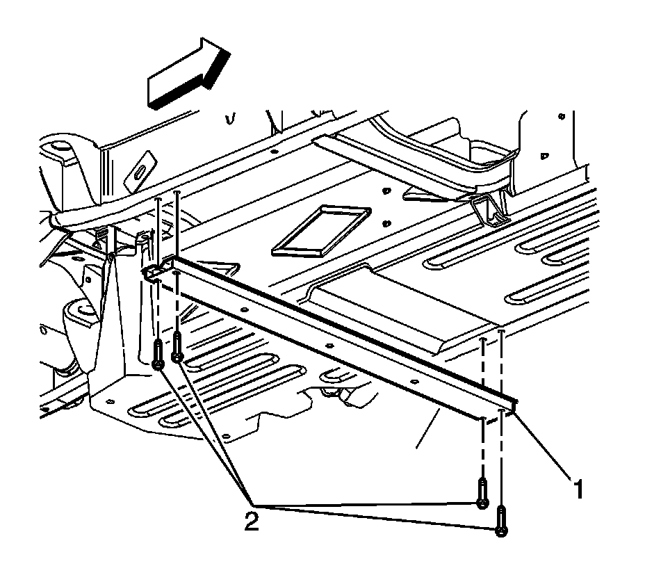 2. Remove the mounting bolts (2) from the frame brace (1).