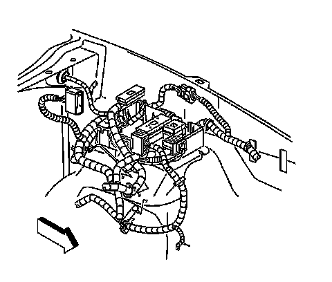 8. Fold the front portion of the rear carpet in order to reveal the I/P harness connected to the rear electrical center. Refer to Carpet Replacement - Rear (TrailBlazer, Envoy, Bravada) Carpet Replacement - Rear (TrailBlazer EXT, Envoy XL) Carpet Replacement - Rear (Envoy XUV) in Interior Trim.