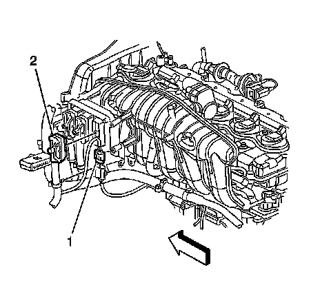5. Connect the I/P harness electrical connector (2) to the powertrain control module.