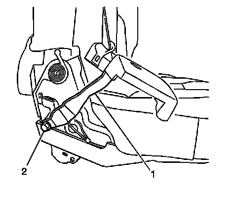 4. Install the rear center seat belt anchor nut (2), if replacing the left-hand seat inboard hinge.