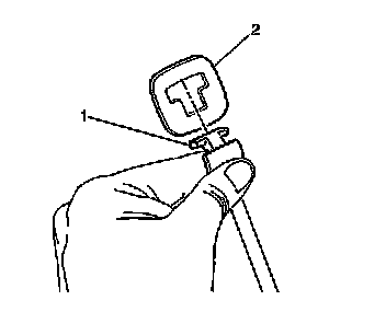1. Unhook the seat back cushion extension panel strap (1) from the extension panel (2).