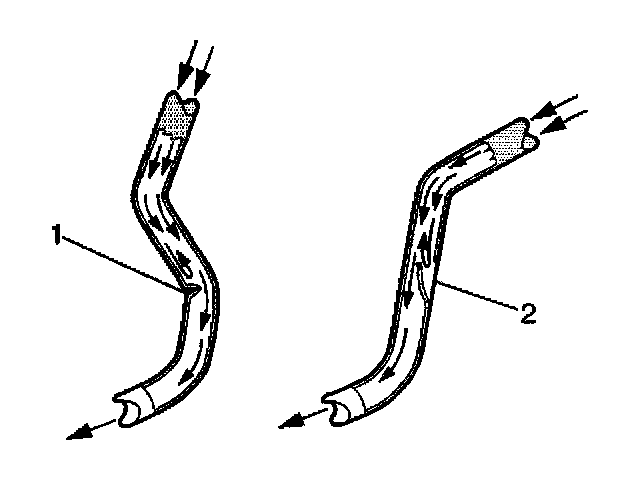 7. If any of the flexible brake hoses were found to have soft spots (2), then the identified flexible brake hose, or hoses require replacement.