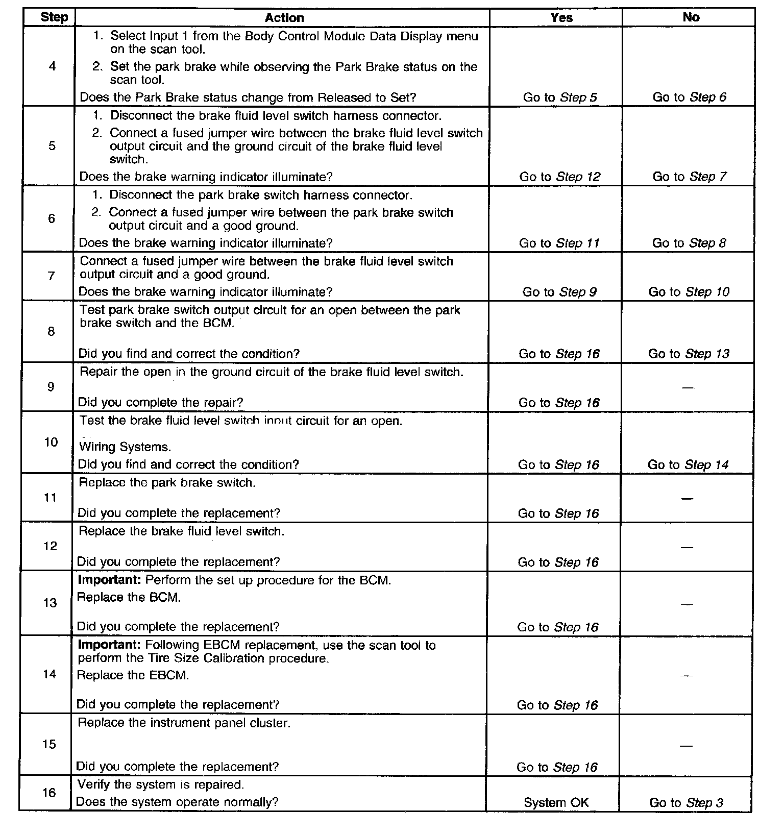 Brake Warning Indicator Inoperative