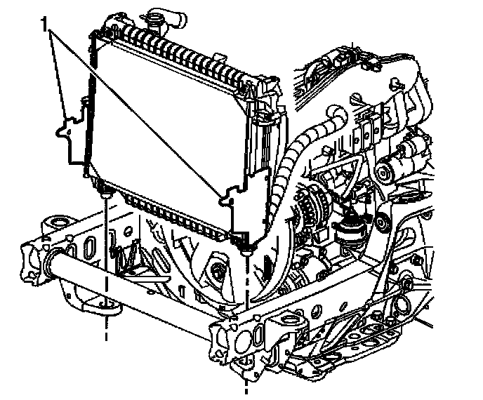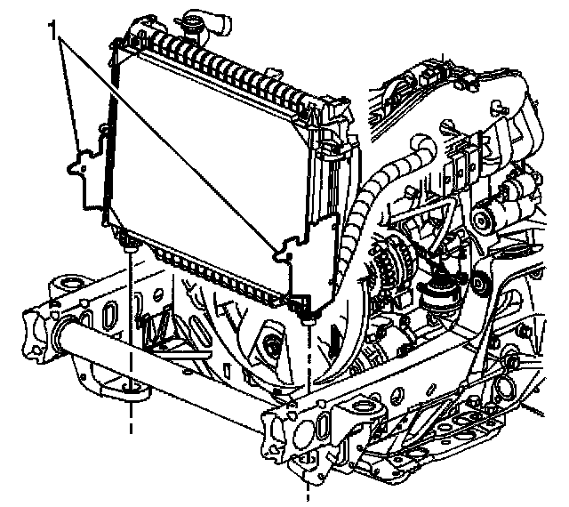 13. Disconnect the radiator side panels from the shroud (1).