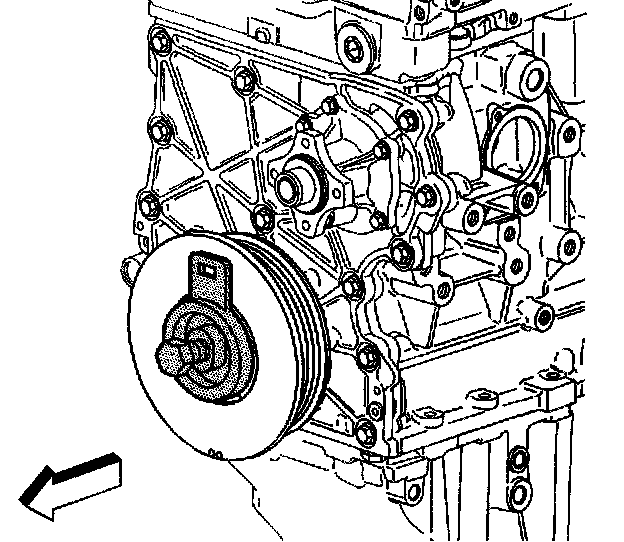 Tighten the crankshaft balancer bolt to 150 Nm (110 ft. lbs.). Use the J 45059 in order to tighten the balancer bolt an additional 180°.