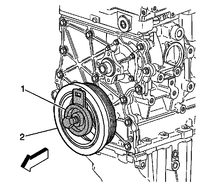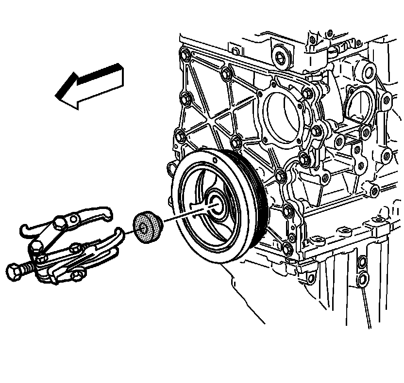 - Insert new tool J 44226-1 Crankshaft Balancer Remover/Holder