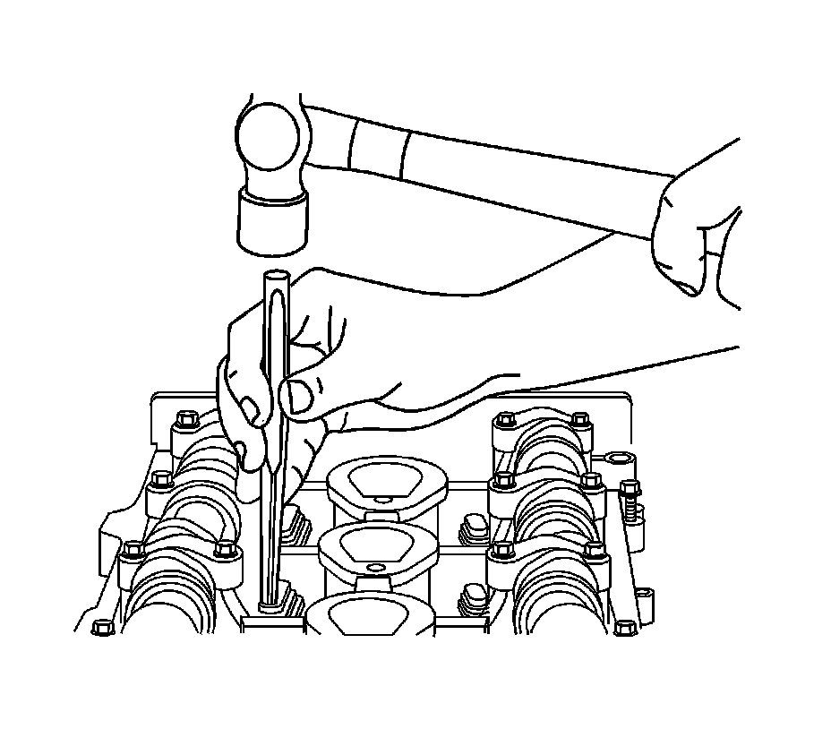 Caution: The camshaft holding tools must be installed on the camshafts to prevent camshaft rotation. When performing service to the valve train and/or timing components, valve spring pressure can cause the camshafts to rotate unexpectedly and can cause personal injury.