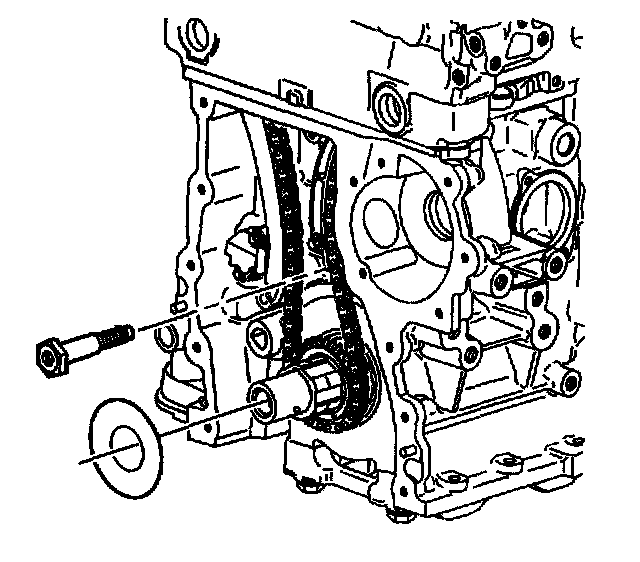 5. Remove the crankshaft balancer friction washer from the crankshaft snout.