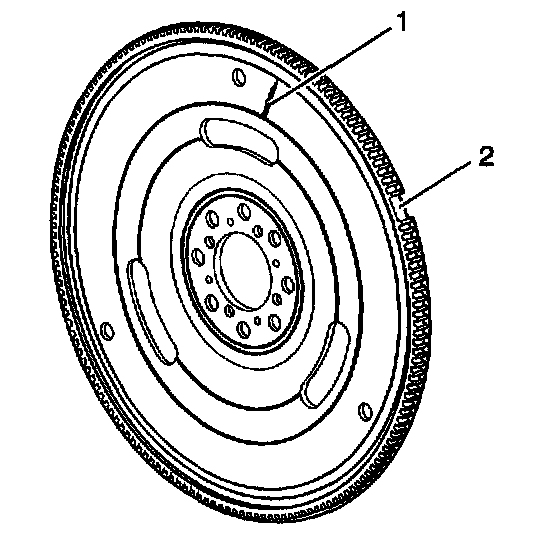Inspect the engine flywheel teeth for damage (2).
