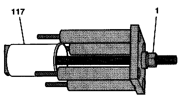 11. Loosen the nut (1) in order to remove the cylinder bore liner (117).