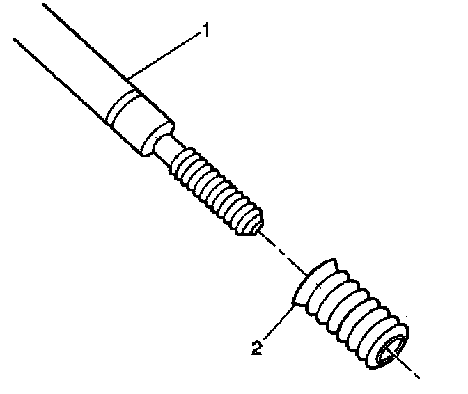 17. Apply threadlock sealant GM P/N United States 12345493, GM P/N Canada 10953488 J 42385-109, LOCTITE 277, or equivalent (1) to the insert OD threads (2).