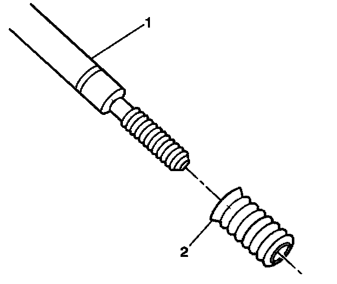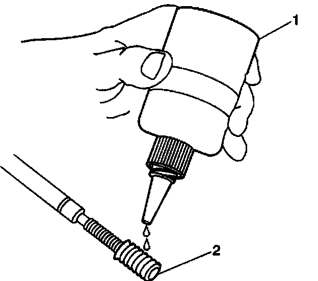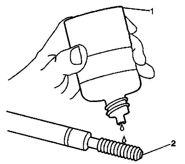 10. Apply threadlock sealant GM P/N United States 12345493, GM P/N Canada 10953483, J 42385-109, LOCTITE 277 or equivalent (1) to the insert OD threads (2).