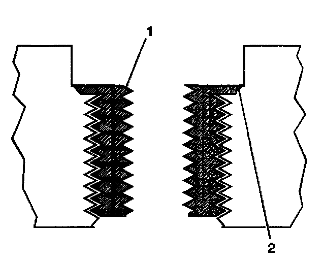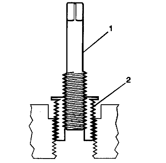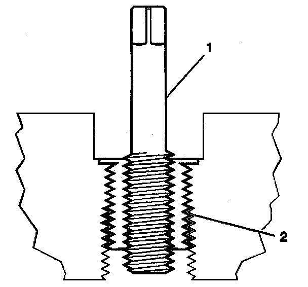14. Inspect the insert (1) for proper installation (2) into the tapped hole.