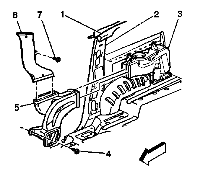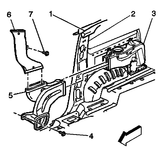 1. Install the lower air distribution duct (5) to the C-pillar.