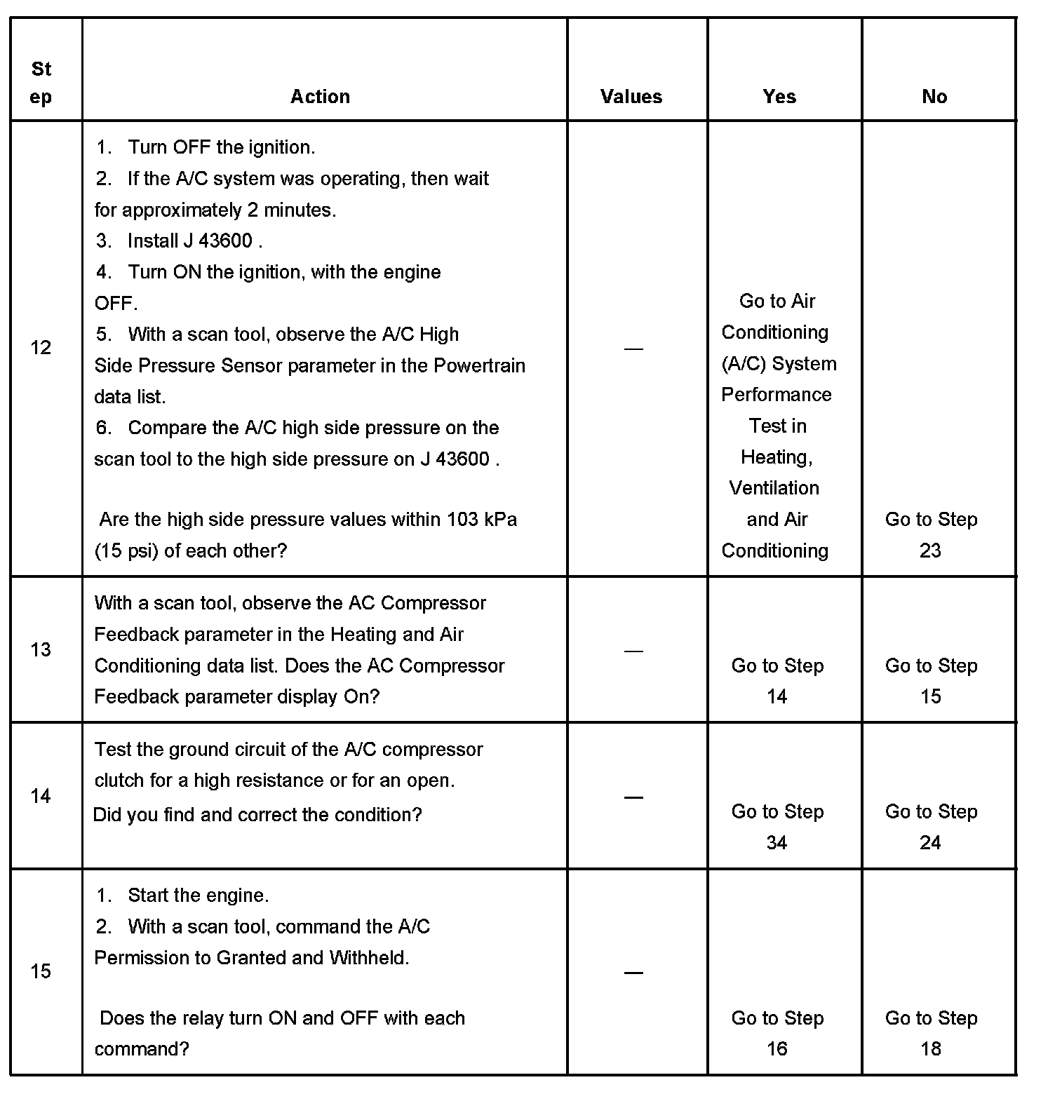 11. The A/C compressor relay output from the powertrain control module (PCM) is disabled if the A/C high side system pressure is interpreted to be higher than 2413 kPa (350 psi).