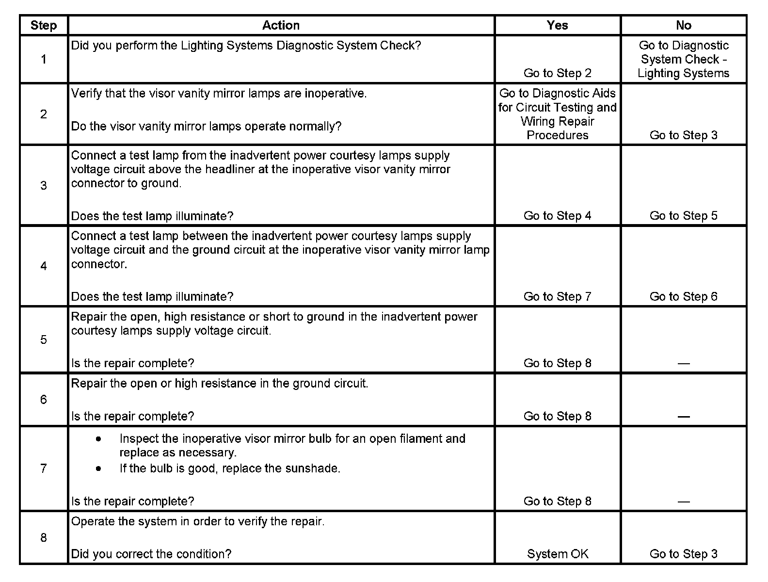 Vanity Mirror Lamps Inoperative