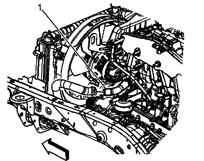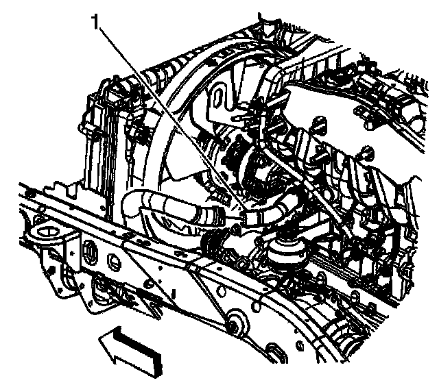 5. Remove the radiator outlet hose from the engine (1).
