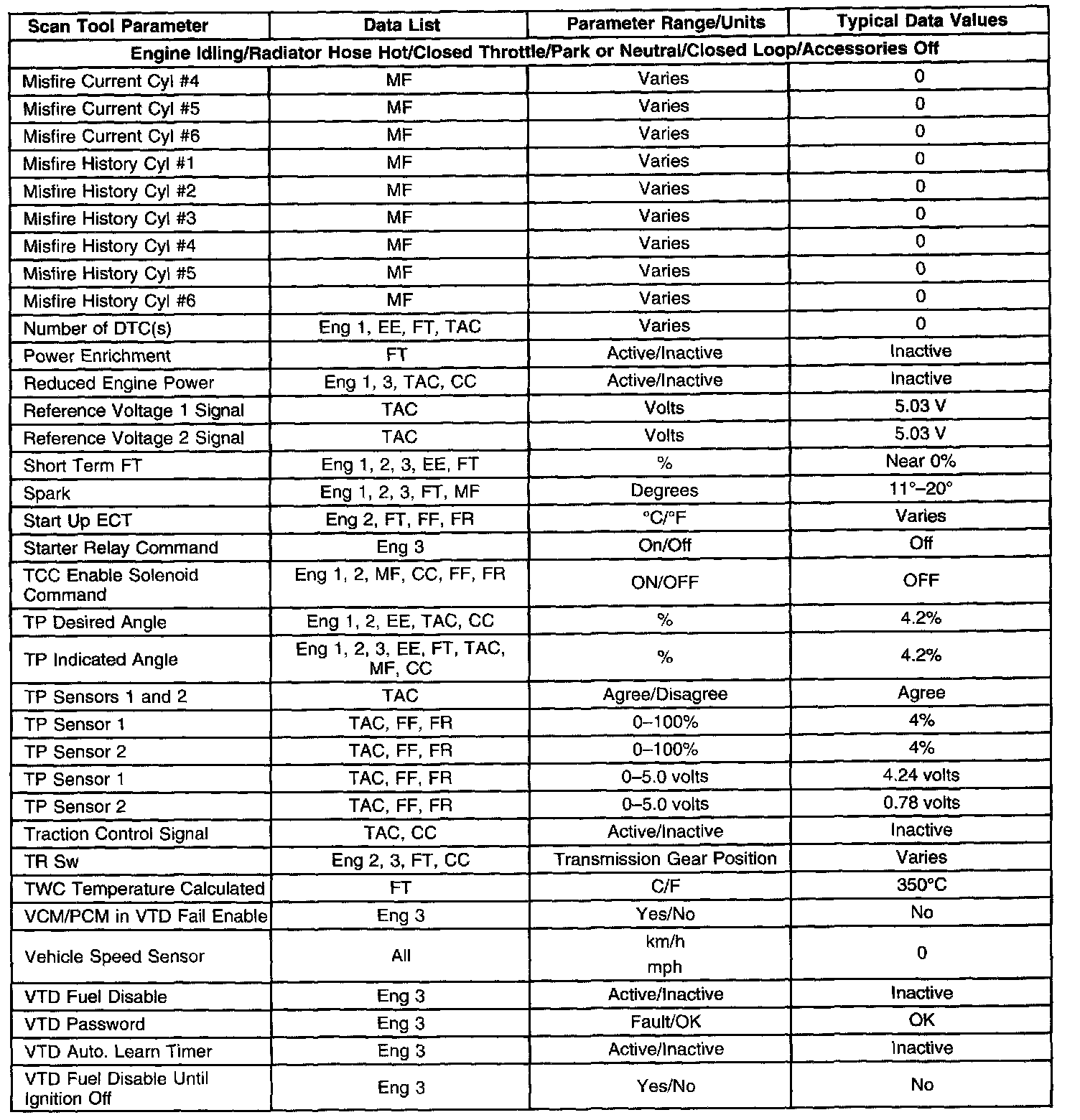 The column labeled Data List indicates where a parameter can be located on the scan tool. Refer to the scan tool operating manual for the exact locations of the data lists. The following is a description of each term listed: